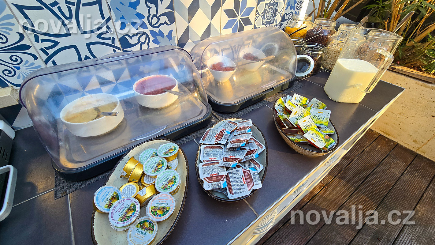 U snídaně jsou k dispozici nápoje - káva, čaj, voda, džus z automatu (v ceně).