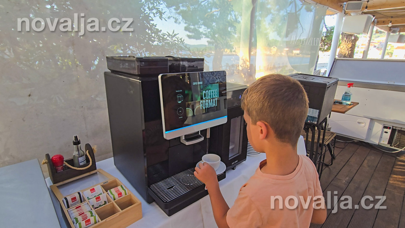 U snídaně jsou k dispozici nápoje - káva, čaj, voda, džus z automatu (v ceně).