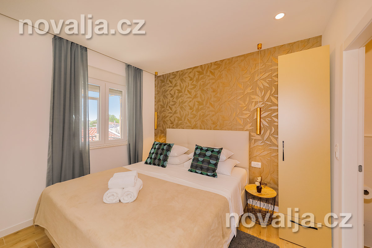 2 ložnice se dvěma lůžky, vybavená kuchyň (lednička, mikrovlnná trouba, varná konvice, kávovar) s rozkládacím gaučem pro 1–2 osoby (buď 2 děti do 12 let, nebo jen 1 osoba starší 12 let), TV+SAT, 2x sociální zařízení - 1x s vanou a WC, 1x se sprchovým koutem a WC, fén, trezor, terasa s posezením. Klimatizace v obou ložnicích i v kuchyni (v ceně).