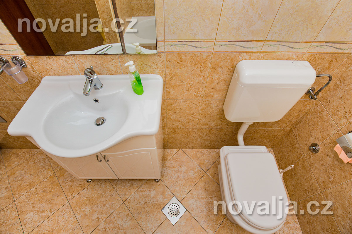 2 ložnice se dvěma lůžky, vybavená kuchyň (2x lednička, mrazák, trouba, varná konvice) s rozkládacím gaučem (200 x 130 cm) pro 1-2 osoby (buď 2 děti do 12 let, nebo jen 1 osoba starší 12 let), TV+SAT, 3x sociální zařízení - 2x se sprchovým koutem a WC, 1x s vanou a WC, pračka, balkón s výhledem na moře, druhý balkón bez výhledu na moře. Klimatizace v kuchyni (v ceně).