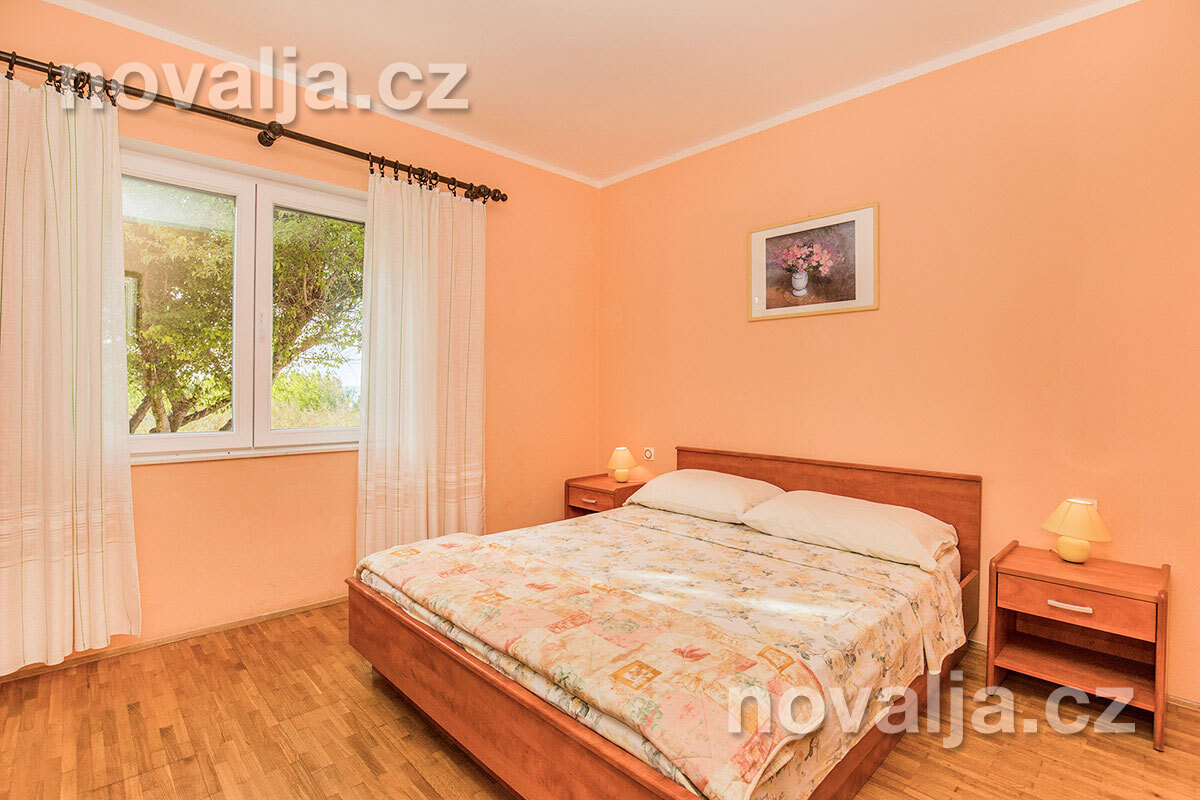 2 ložnice - první ložnice se dvěma lůžky, druhá ložnice s manželskou postelí, vybavená kuchyň (lednička, mrazák, mikrovlnná trouba, varná konvice, kávovar), TV+SAT, sociální zařízení se sprchovým koutem a WC, terasa s bočním výhledem na moře (přes zeleň). Klimatizace (v ceně).
