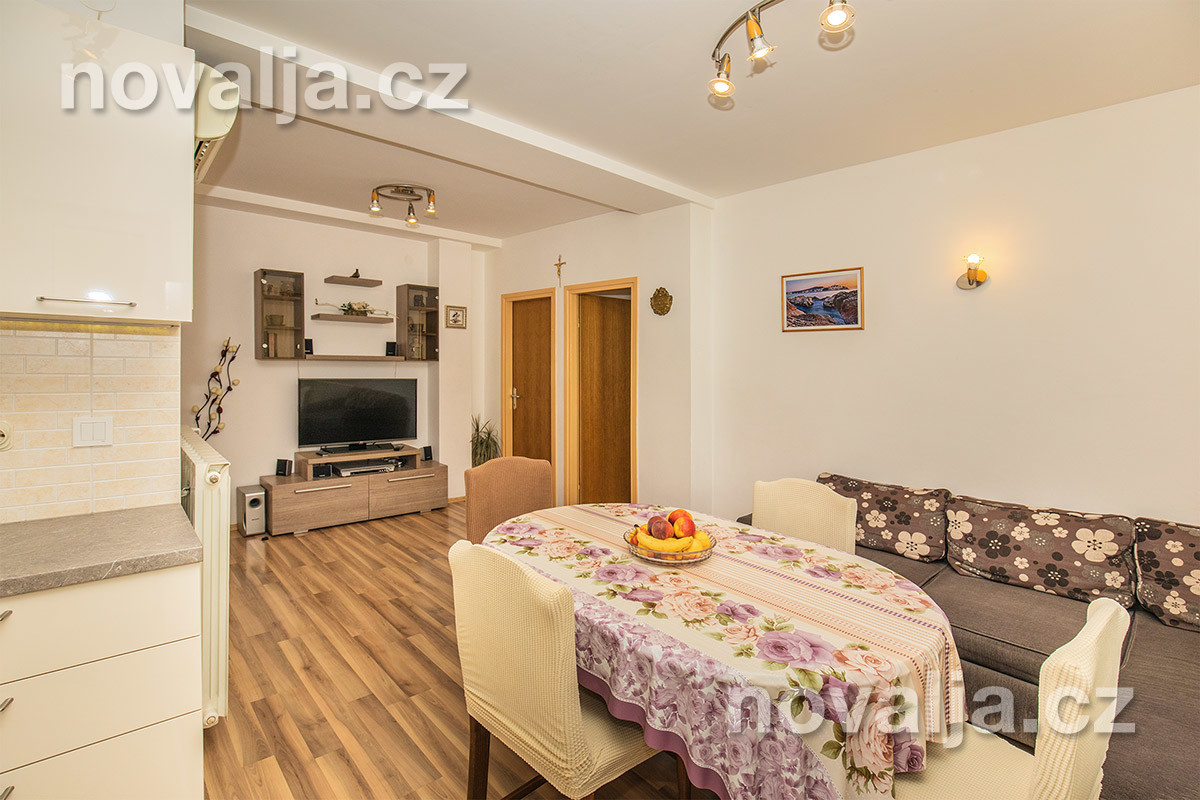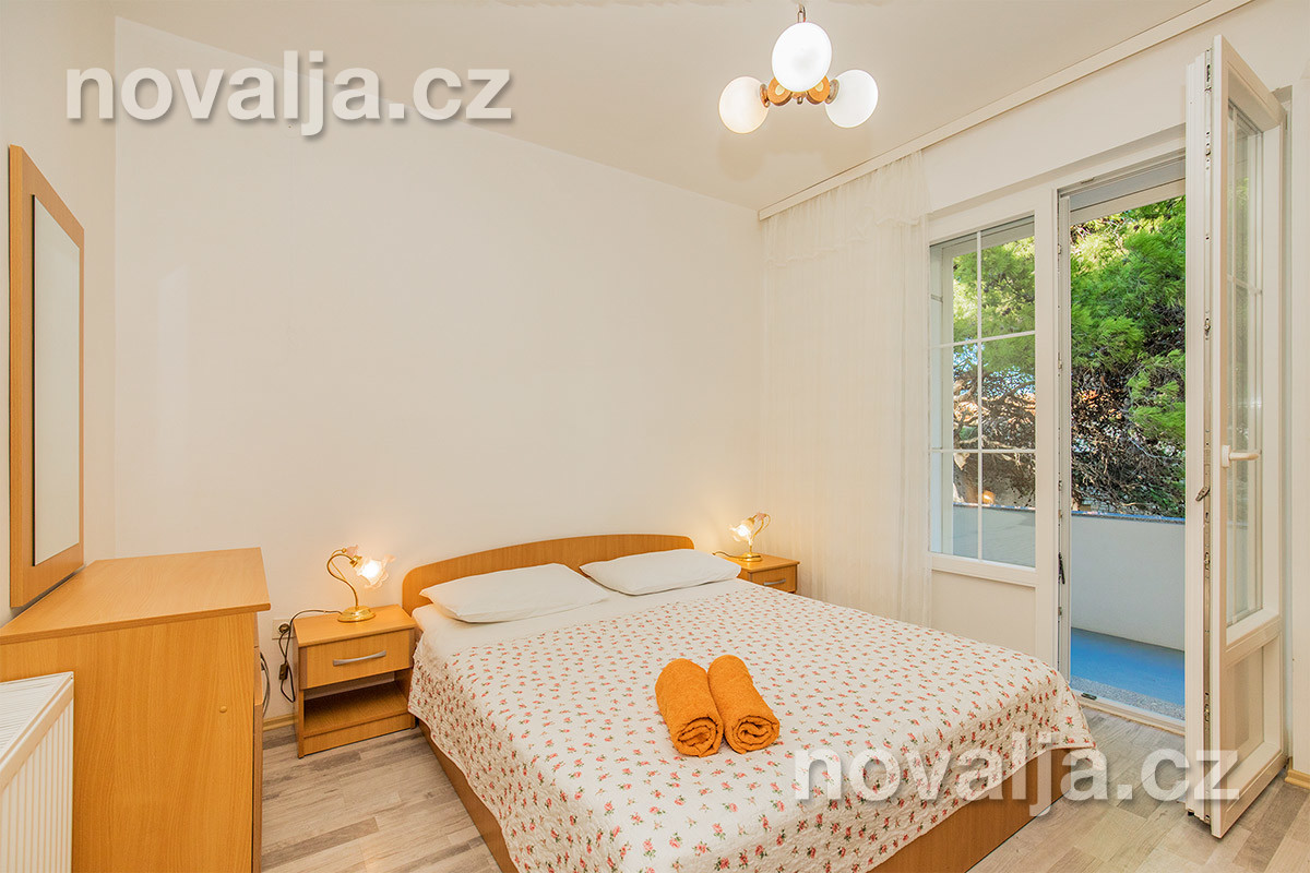 2 ložnice se dvěma lůžky, vybavená kuchyň (lednička, mrazák, trouba, myčka, mikrovlnná trouba, varná konvice, kávovar) s rozkládacím gaučem (140x200) pro 1 osobu, 2x sociální zařízení se sprchou a WC, 2x balkón, jeden s výhledem na moře, TV. Klimatizace v kuchyni je v ceně.