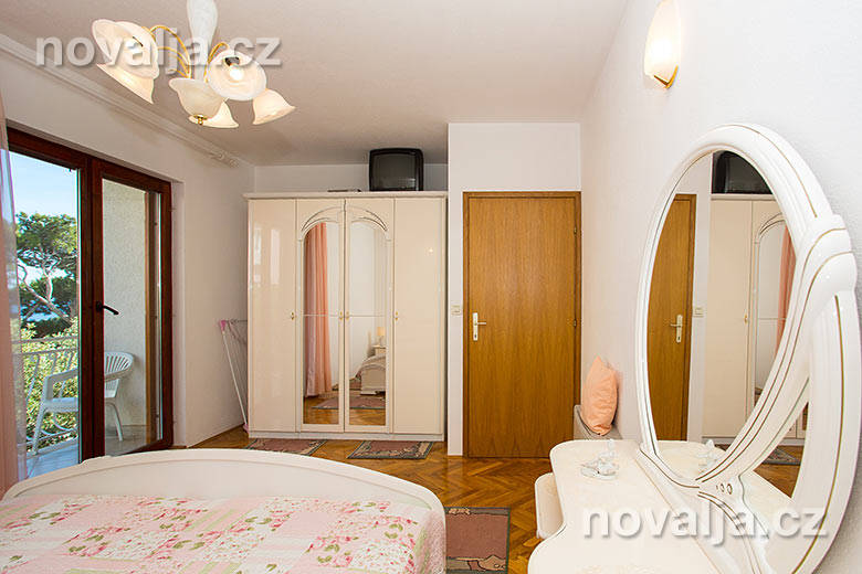 1 ložnice se dvěma lůžky, vybavená kuchyň (lednička, mrazák, varná konvice, kávovar) s rozkládacím gaučem (200 x 140 cm) pro 1-2 osoby (buď 2 děti do 12 let, nebo jen 1 osoba starší 12 let), sociální zařízení s vanou a WC, TV+SAT, terasa a balkón s výhledem na moře, na terase slunečník (2 x 2 m). Klimatizace v kuchyni i v ložnici (v ceně).