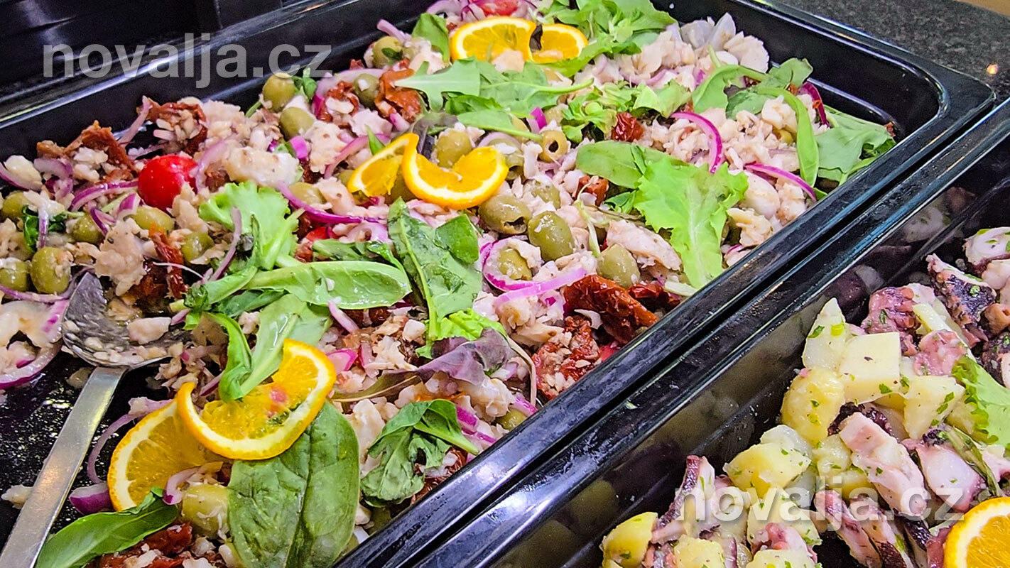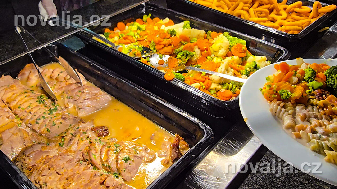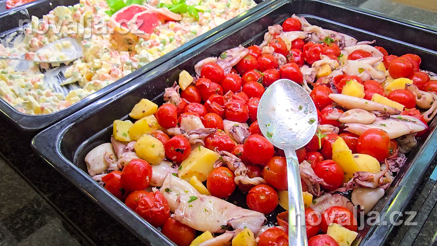 Bufetové polopenze v ceně - podávají se v restauraci jednoho ze tří hotelů (Mimosa, Hedera nebo Narcis) v areálu resortu. Součástí polopenze je 1 nápoj k večeři.