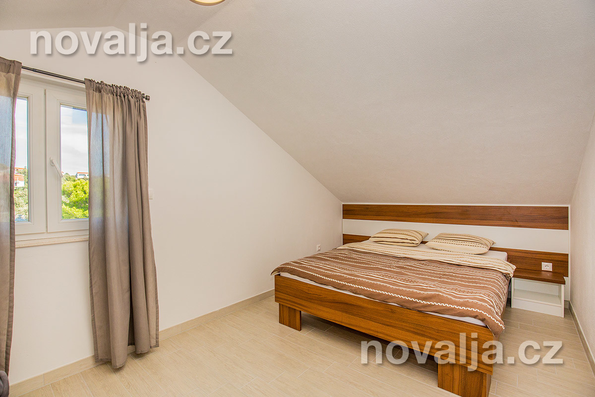 2. poschodí: 1 ložnice se dvěma lůžky a s rozkládacím gaučem (180 x 135 cm) pro 1-2 osoby (buď 2 děti do 12 let, nebo jen 1 osoba starší 12 let), sociální zařízení se sprchovým koutem a WC, terasa s výhledem na moře (12 m²).