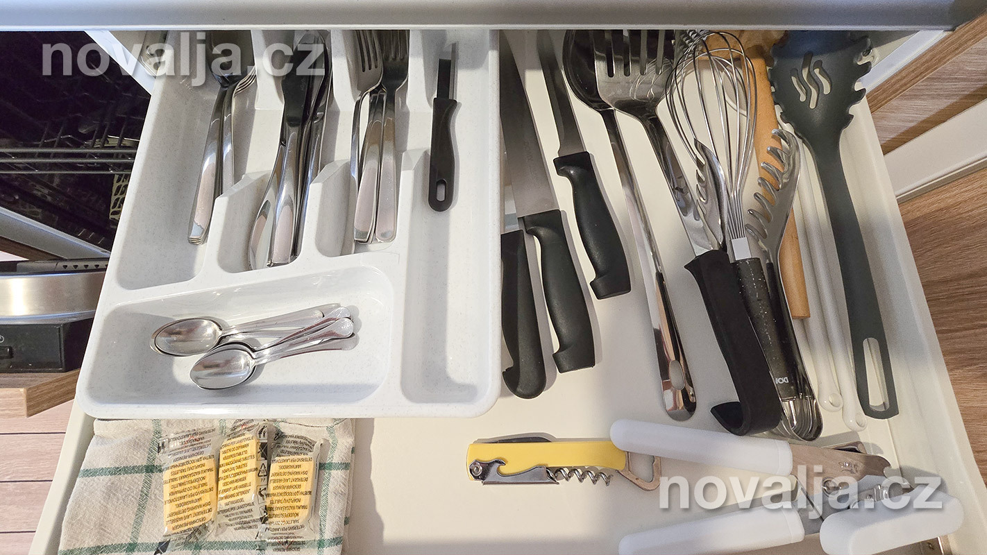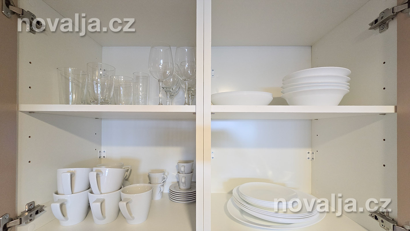 2 ložnice se dvěma lůžky (manželské lůžko 200 x 160 cm a samostatná lůžka 200 x 80 cm), vybavená kuchyň (varná deska, lednička, mrazák, myčka, varná konvice) s rozkládacím gaučem (185 x 135 cm) pro 1 dítě do 18 let, TV+SAT, 2x sociální zařízení se sprchovým koutem a WC, fén, sejf, prostorná terasa s lehátky, zahradním nábytkem a vířivkou, klimatizace v kuchyni (v ceně).