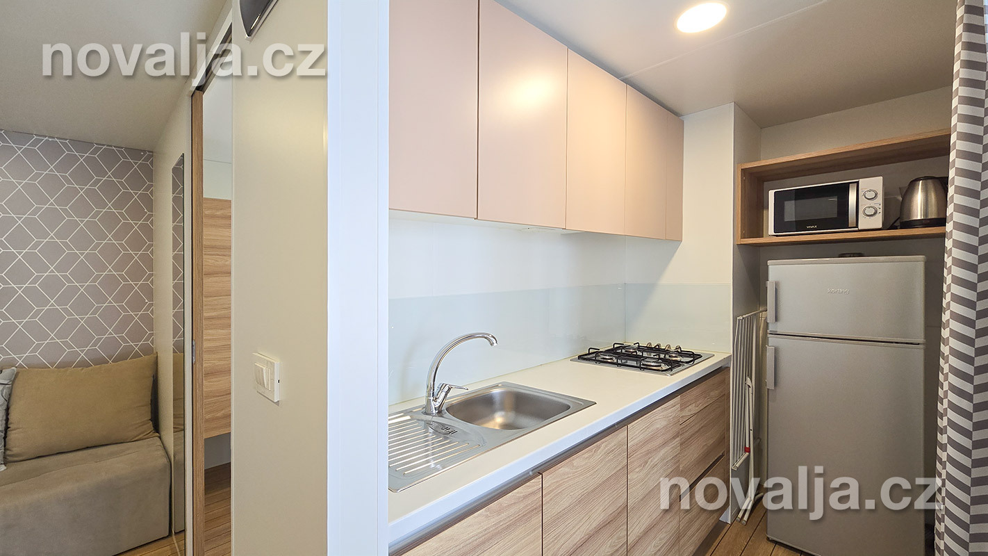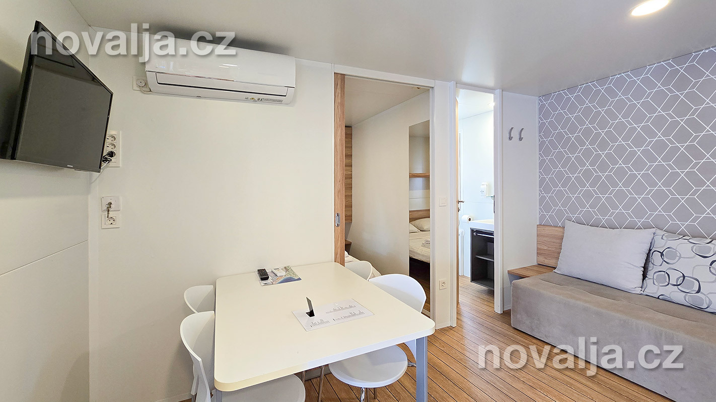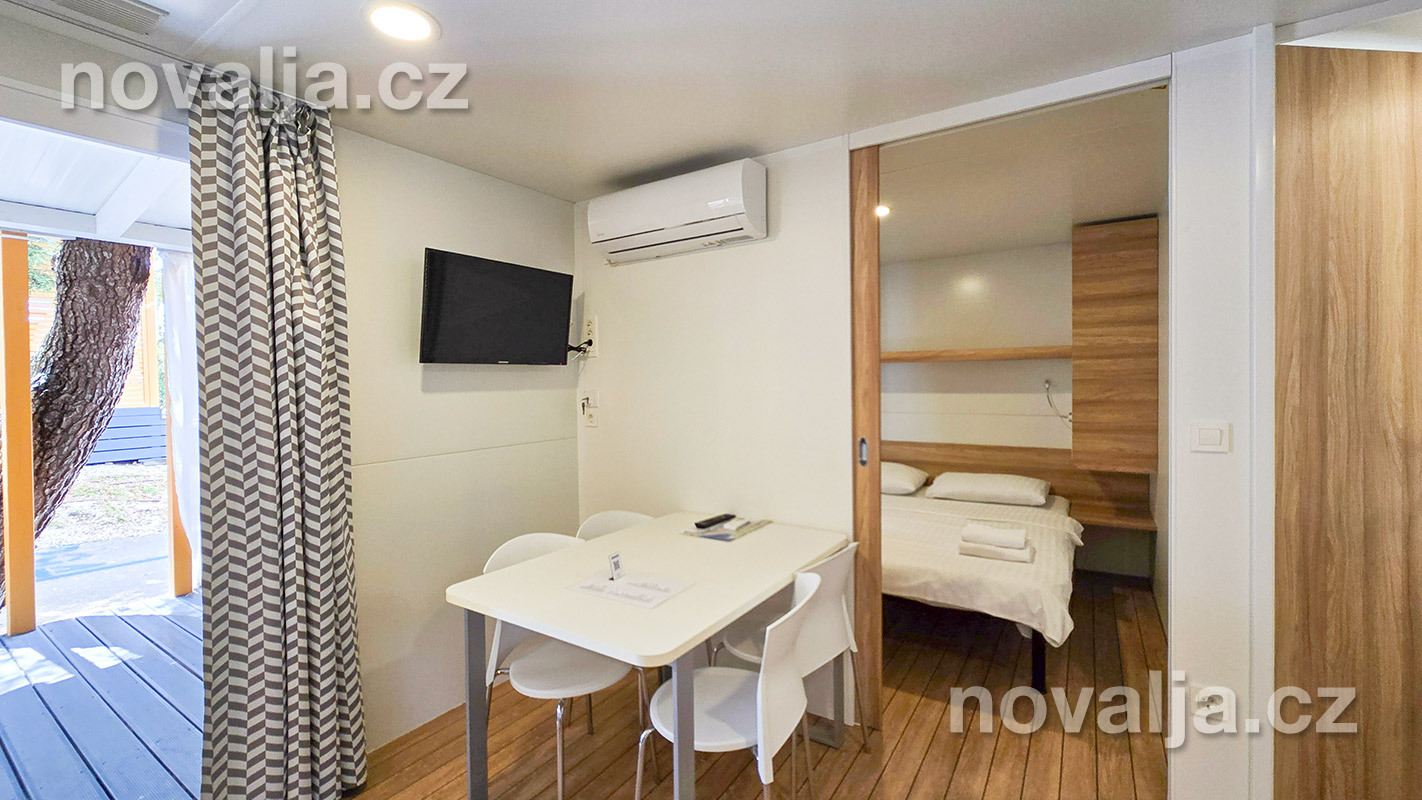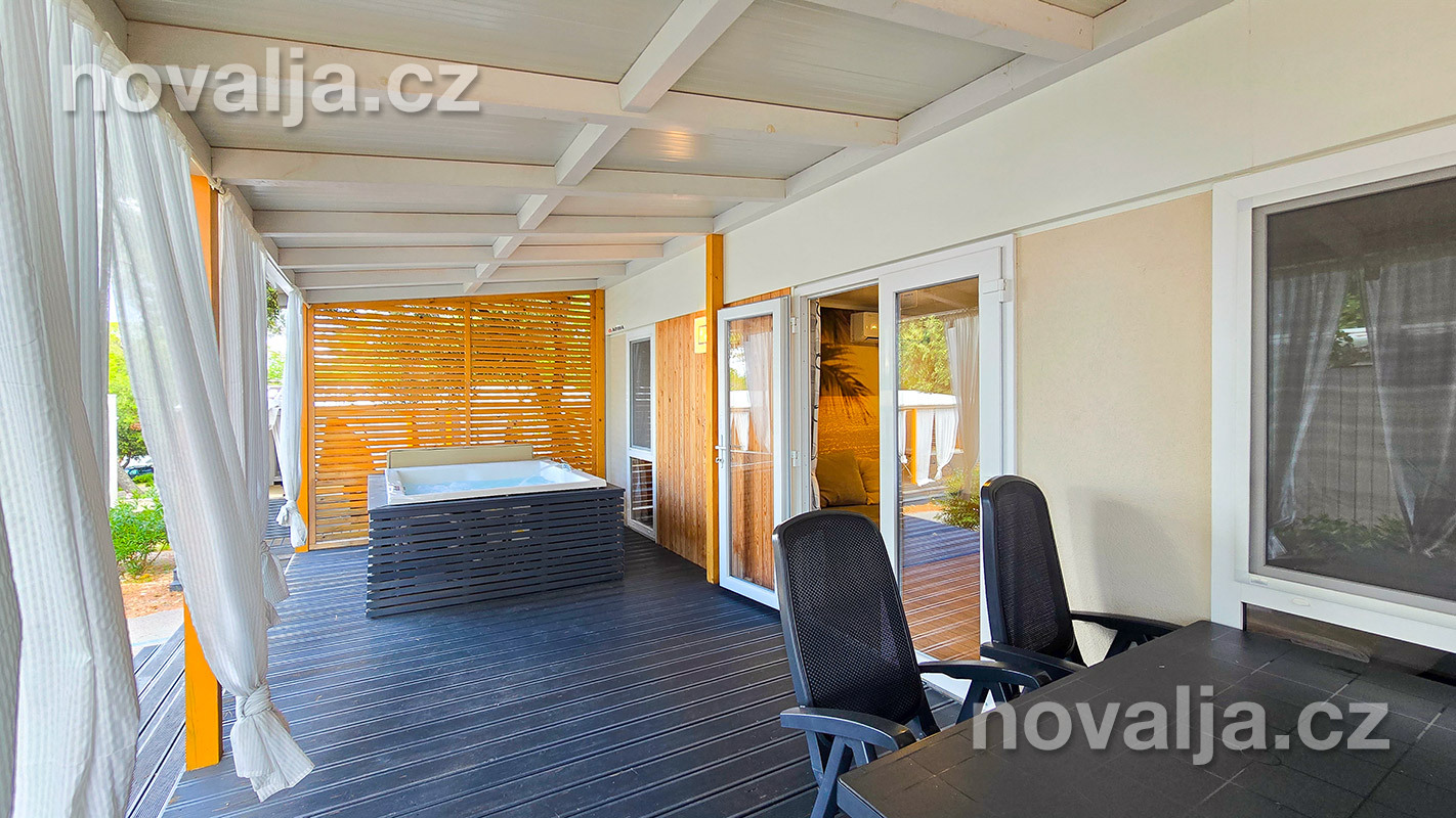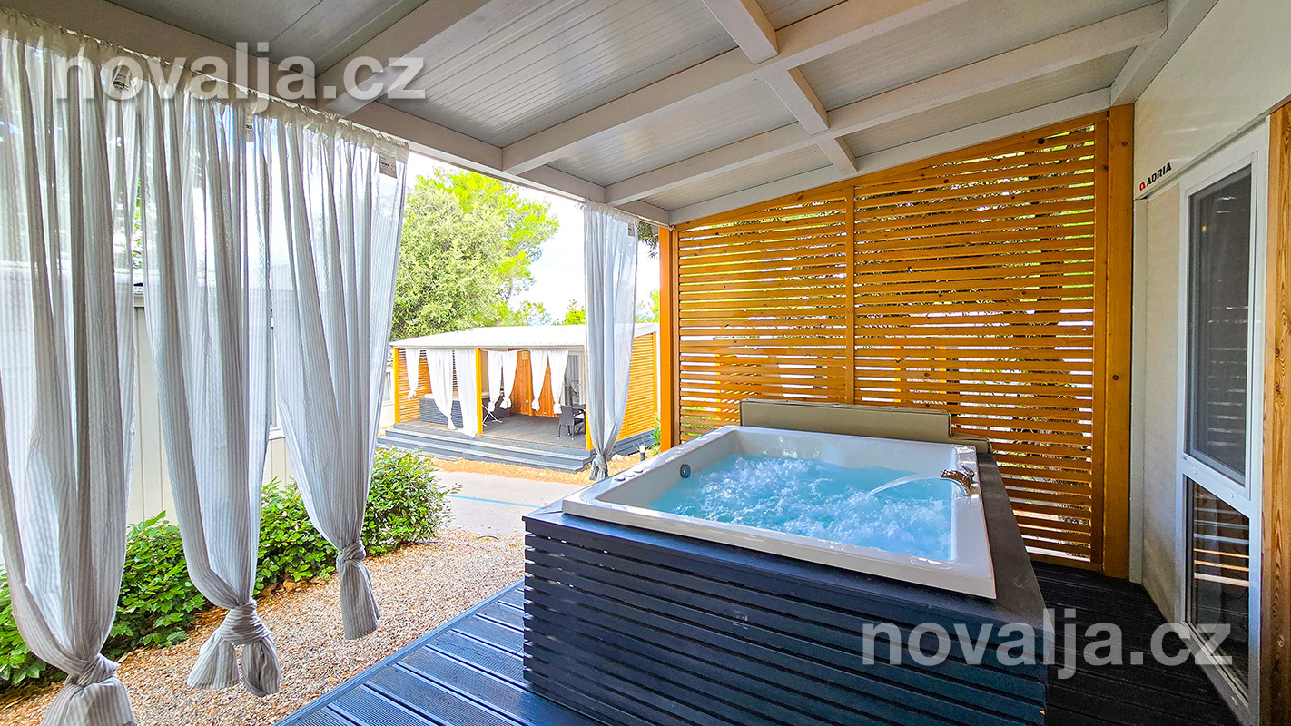 Mobilhomy Premium Relax se nacházejí u bazénu, 80–150 m od nejbližší pláže. Mají vířivku s více tryskami než typ Premium.