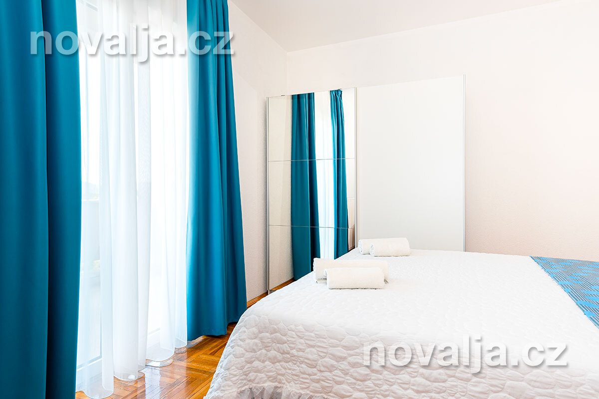 1 ložnice se dvěma lůžky (140 x 200 cm), vybavená kuchyň (lednička, mrazák, mikrovlnná trouba, varná konvice) se dvěma lůžky, TV+SAT, sociální zařízení se sprchovým koutem a WC, fén, terasa s výhledem na moře. Klimatizace v kuchyni (v ceně).