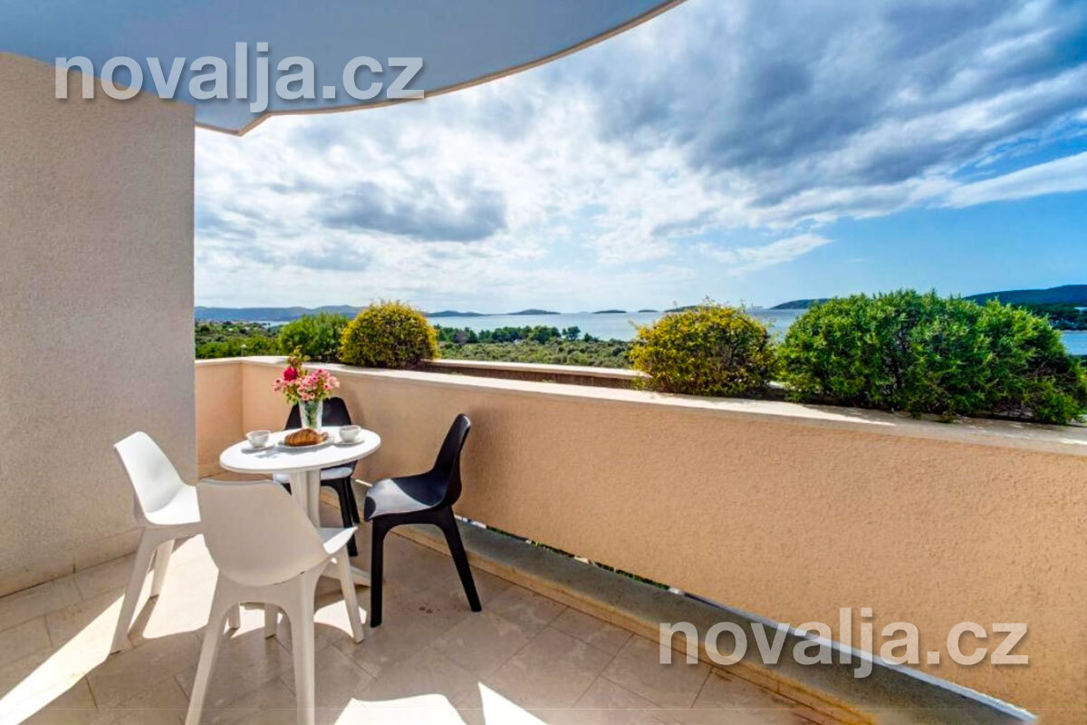 Apartmán nemá vlastní balkón, hosté mohou využívat posezení v přízemí domu nebo u bazénu.