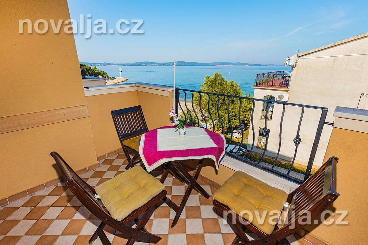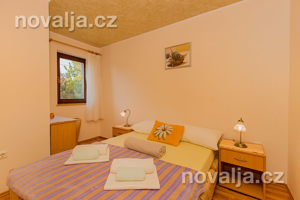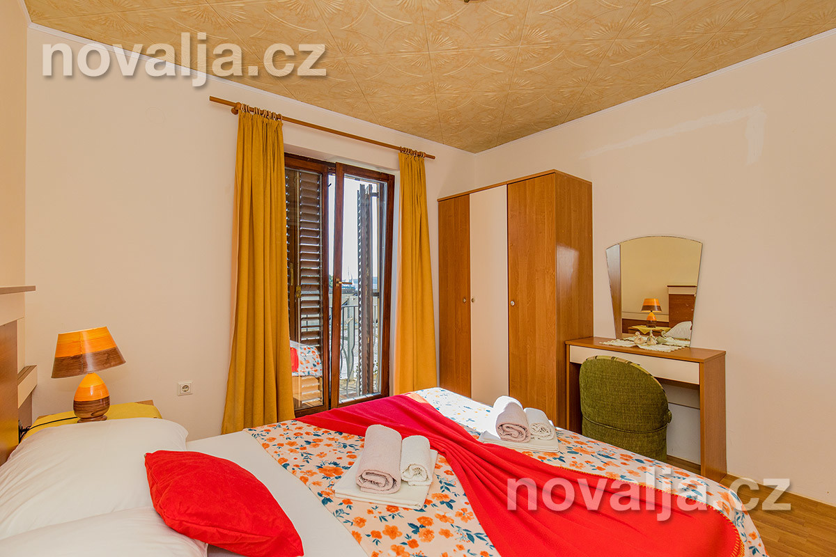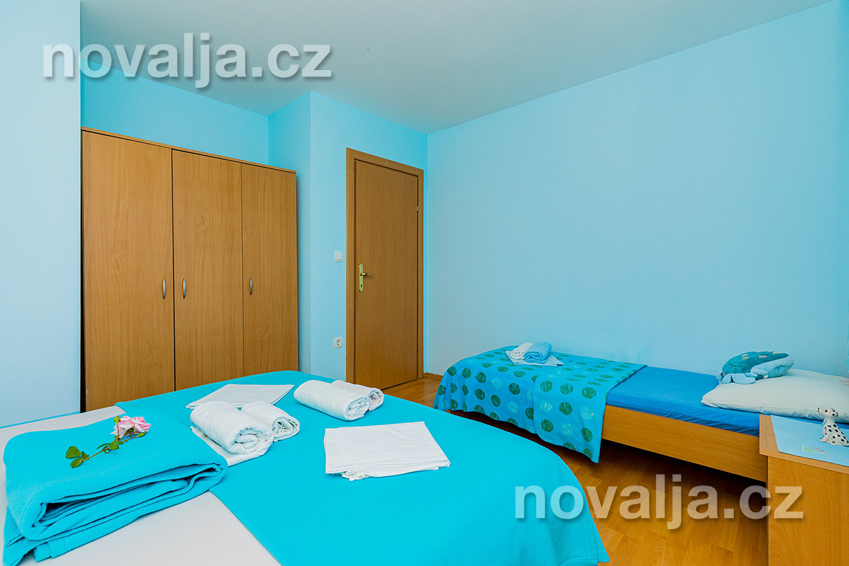 2 ložnice - první ložnice s manželskou postelí (200 x 160 cm), druhá ložnice s manželskou postelí (200 x 140 cm) pro 2 osoby, oddělená od kuchyně posuvnými dveřmi, vybavená kuchyň (lednička, mrazák, varná konvice), sejf, sociální zařízení se sprchovým koutem a WC, balkón s výhledem na moře. Klimatizace v kuchyni a v ložnici (v ceně).