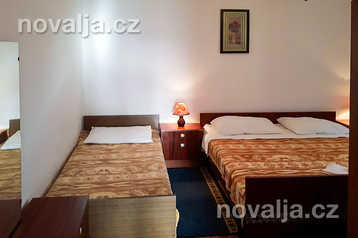4 ložnice - dvě ložnice se třemi lůžky a 2 ložnice se dvěma lůžky, vybavená kuchyň (2x lednička, 1x mrazák, trouba, mikrovlnná trouba, varná konvice, kávovar), TV+SAT, 2x sociální zařízení - jedno se sprchovým koutem a WC, druhé s vanou a WC, terasa. Klimatizace v kuchyni (za příplatek 10 €/den, hradí se na místě).