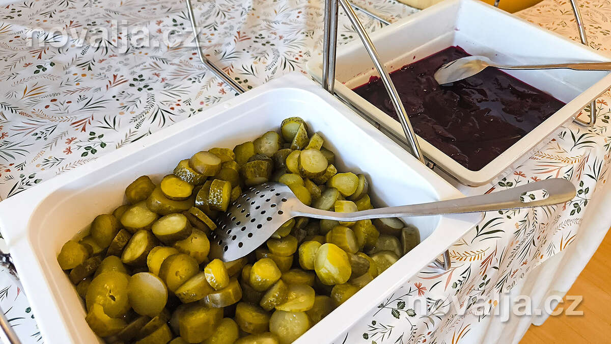Bohaté bufetové snídaně (v čase 7.30–10.00), bufetové obědy (v čase 12.30–14.00) i večeře (v čase 18.30–20.30).