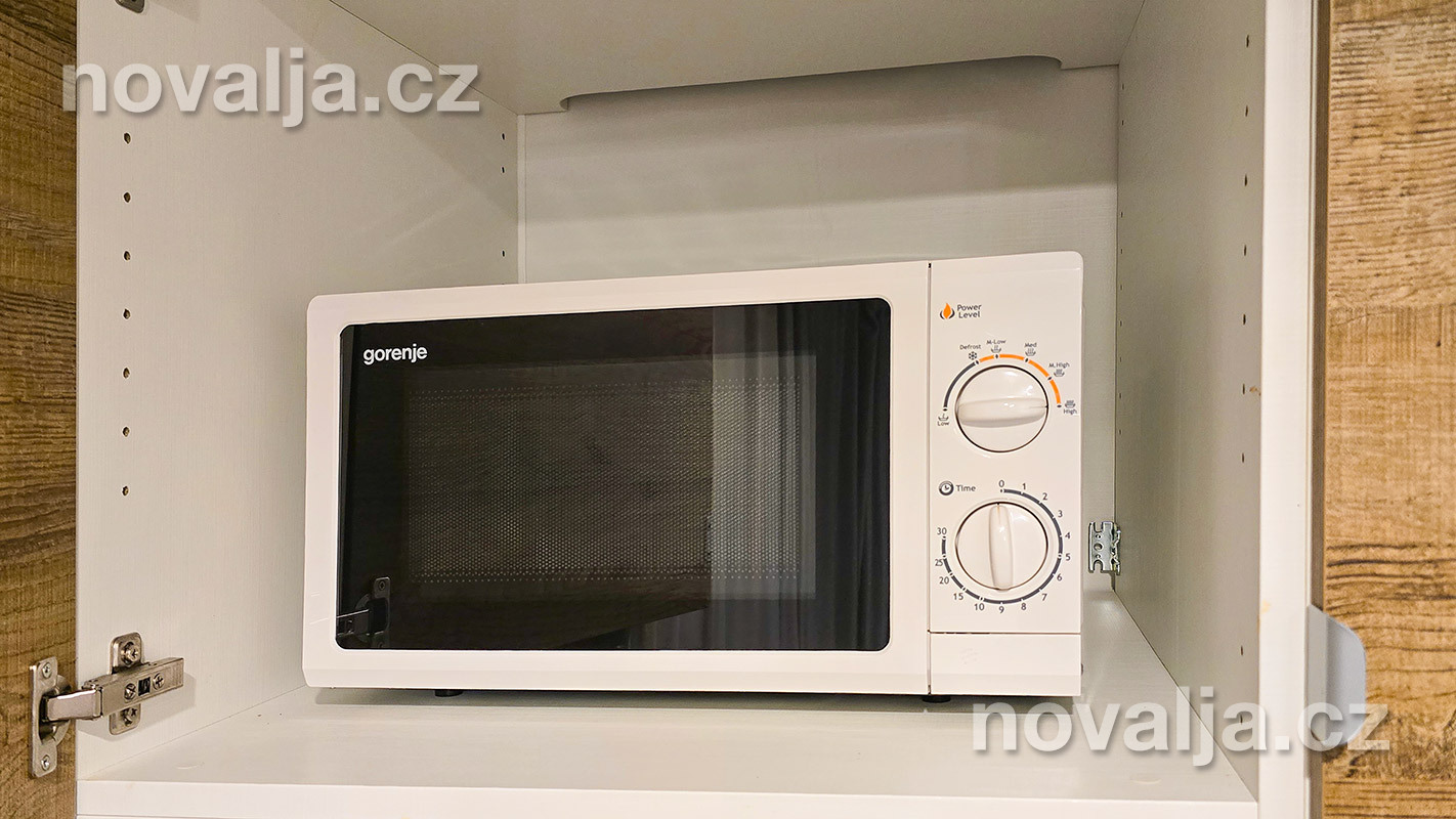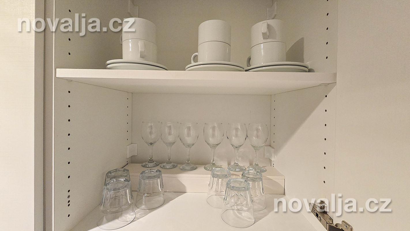 Jedna ložnice se dvěma lůžky, vybavená kuchyň (lednička, varná konvice, kávovar) s rozkládacím gaučem pro 1–2 osoby, sociální zařízení se sprchovým koutem a WC, fén, TV+SAT, terasa. Klimatizace v kuchyni (v ceně).