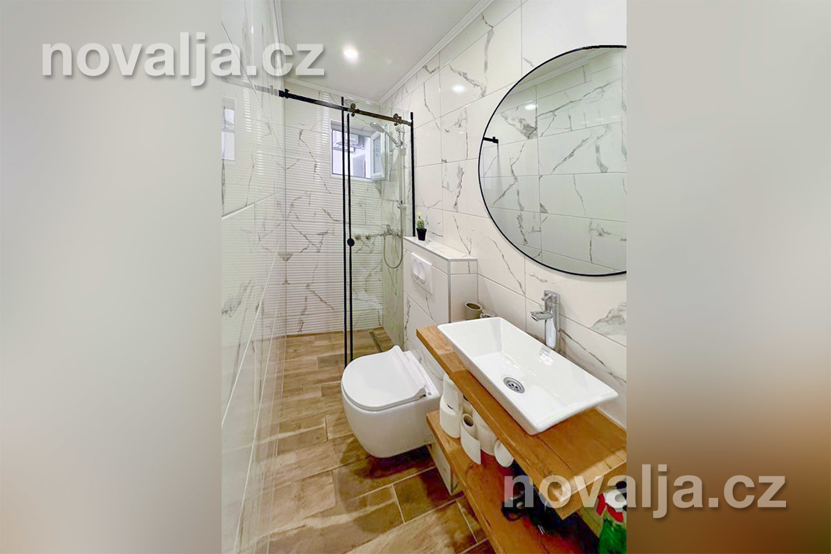 2 ložnice - v jedné ložnici dvě lůžka a rozkládací gauč (190 x 160 cm) pro 1-2 osoby, ve druhé ložnici dvě lůžka a jedno další lůžko s možností roztažení pro 1-2 osoby, vybavená kuchyň (lednička, mrazák, trouba, varná konvice), TV+SAT, 2x sociální zařízení se sprchovým koutem a WC, pračka, fén, terasa, zděný gril, houpačka a venkovní sprcha na terase u apartmánu. Klimatizace v obou ložnicích (v ceně). Rozloha 70 m².