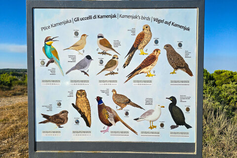 Naučná stezka dinosaurů - na poloostrově Kamenjak můžete najít také zkamenělé stopy dinosaurů, kterým zde byly vytvořeny i repliky (v dnešní době by již zasloužily renovaci). Stezka je doplněna naučnými tabulemi s ilustracemi.