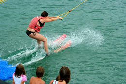 Wakeboarding je poměrně nový a velice oblíbený vodní sport podobný vodnímu lyžování, ale místo lyží se používá prkno. Může to být jízda na prkně taženém člunem nebo vlekem.