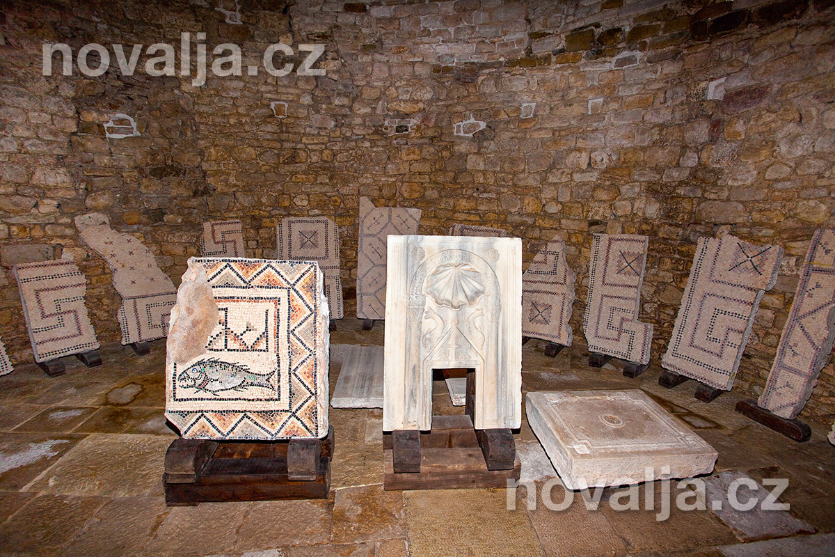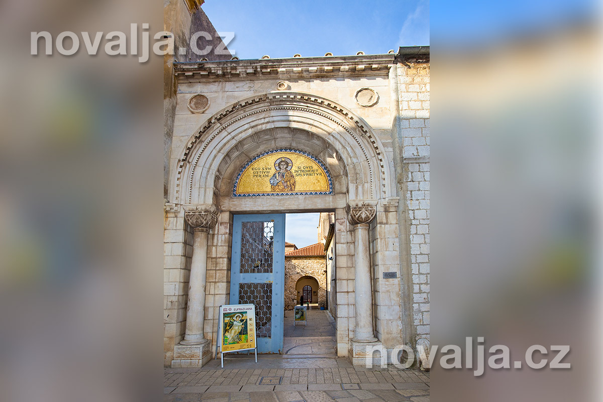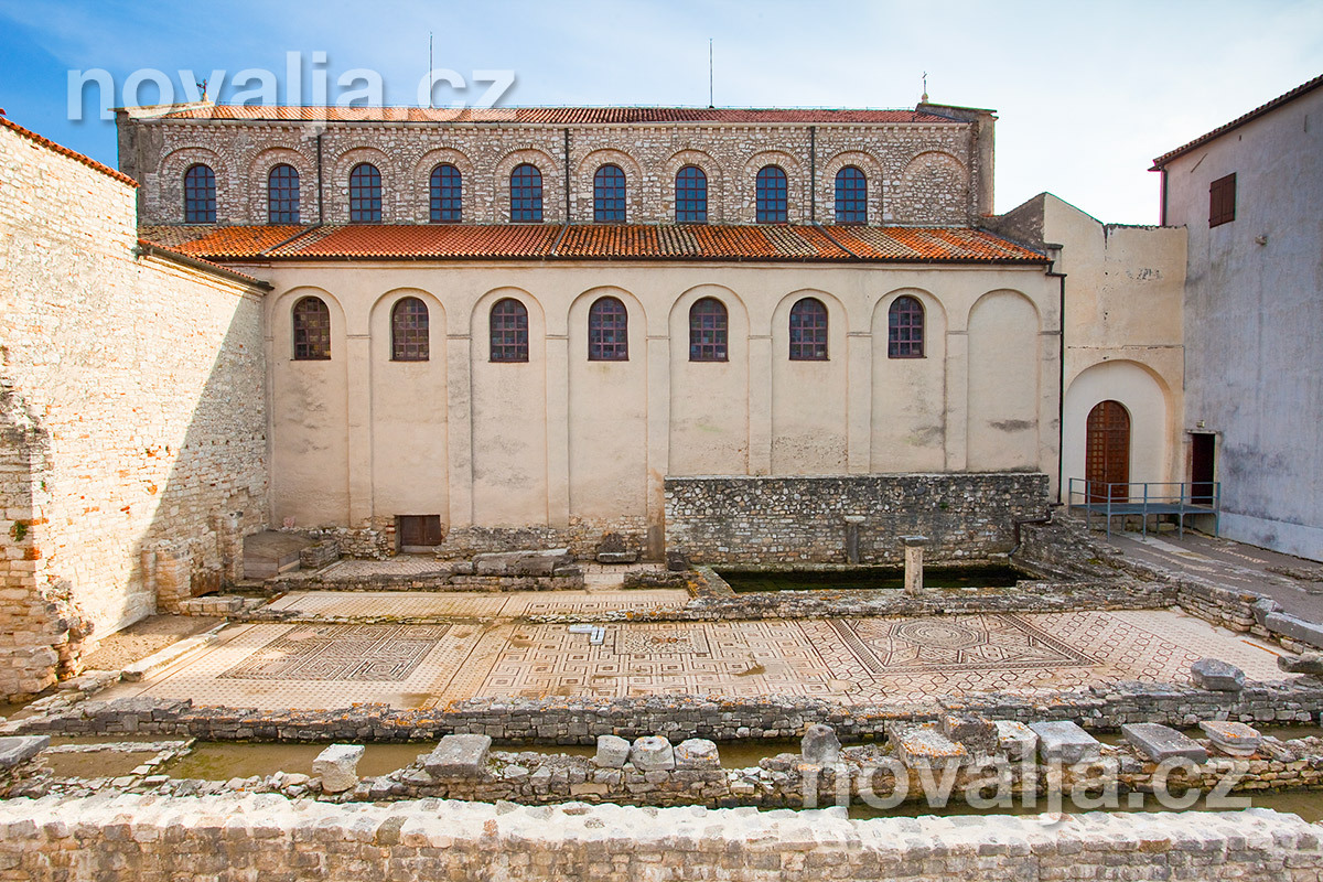 Stavba byla několikrát přestavována až do dnešní gotické podoby. Přes všechny proměny, poškození válkami, zemětřeseními apod. zde můžeme vidět dochované podlahové mozaiky z 5. století, reprezentující raně křesťanské malířství na chorvatském území. Obraz Krista a postavy mučedníků a mučednic, stejně jako fascinující kompozice Panenky Marie na trůně jsou překvapivé svým jemným, skoro filigránským zpracováním.
